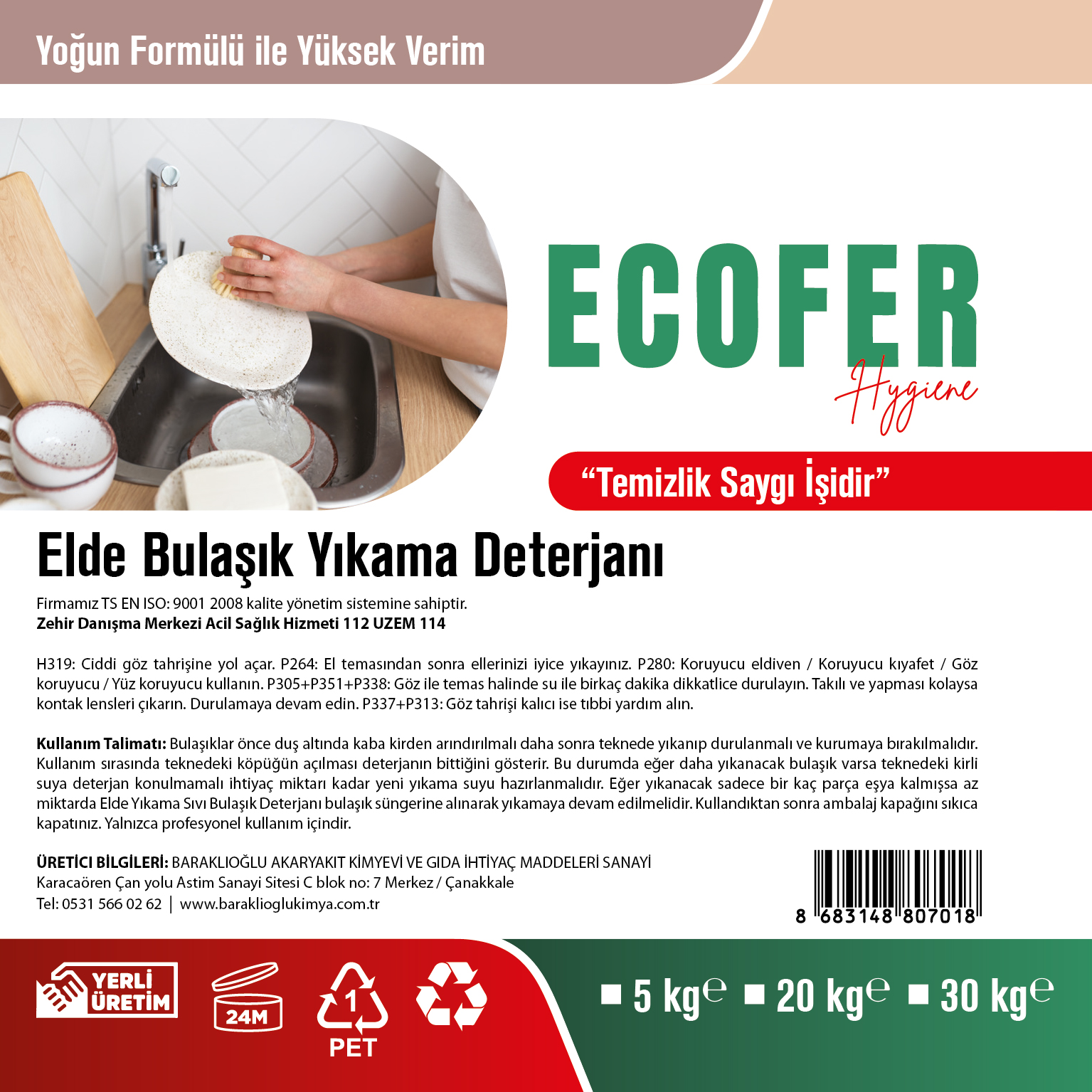 Profesyonel Elde Bulaşık Yıkama Deterjanı | Hijyenik ve Ekonomik Çözüm | BARAKLIOĞLU